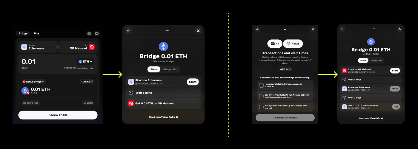 The Ethereum-Optimism bridge offers a seamless, predictable experience: